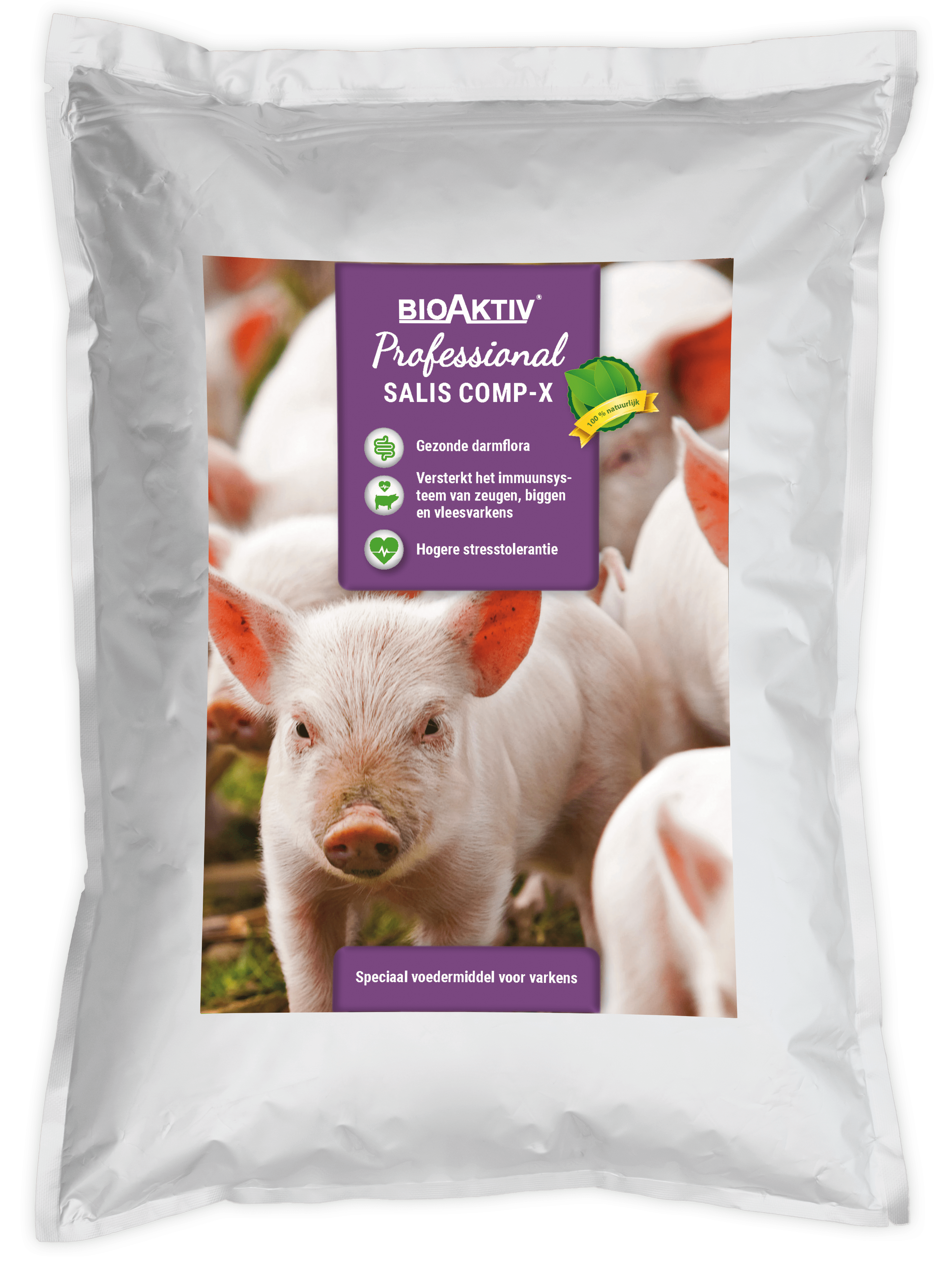 Vaak zien we, ondanks alle management en voer maatregelen, dat gespeende biggen het moeilijk hebben ze starten moeilijk op en hebben vaak last van te platte of dunne mest, of dat juist de best groeiende biggen plotseling plat gaan, het zogenaamde ”Fietsen”. Speciaal hiervoor heeft BioAktiv het product “BioAktiv Salis Comp X“ ontwikkeld.